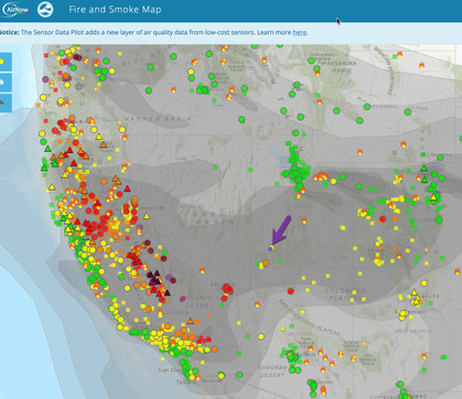 We had been watching the EPA's fire and smoke tracker (we were at the dot indicated by the purple arrow). On our second day, smoke from the West Coast wildfires blew back in - we could actually see he smoke descending lower and lower over the island's hills till it reached the ground.