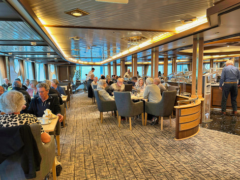 We were fortunate to have great internet for most of the trip thanks to, as we found out, SpaceX's Starlink service. During time at sea, people could hang out in a lounge on top of the ship with large windows to take in the expansive views.