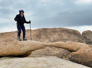 Our objective in staying overnight was to visit the Alabama Hills, an area of stacked, rounded boulders that sit below Mount Whitney. We could not see Whitney's summit, but were able to make out some mountains that stand near it.