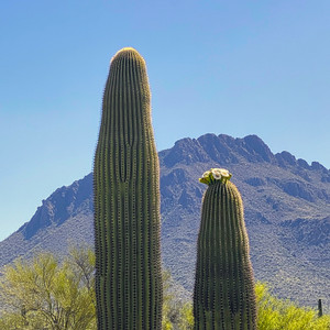 Saguaro take many years to grow. In their early years, they typically grow under the shelter of other trees.