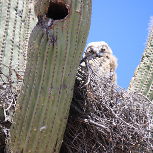 One saguaro we would pass on our hikes provided a nest to a family of great horned owls, including two very fluffy chicks.