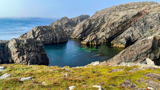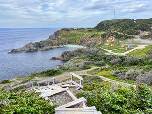 We drove to the end of the Twillingate peninsula and took another cliffside hike with beautiful views of offshore rocks and colorful fishing villages in the distance.