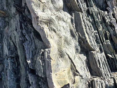 The cliffs originated from underwater sedimentation on the continental shelf as the supercontinent of Pangaea was pulling apart. Later, the rocks were pushed to the surface, then rotated vertically (actually, they were rotated more than 90 degrees).