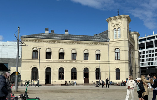 The annual Nobel award ceremonies are held in the atrium of the Oslo City Hall across the way.