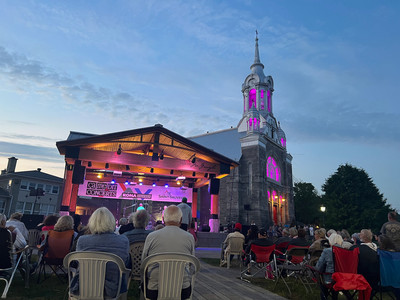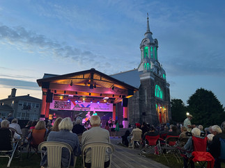 In the evening, we were able to enjoy not one but two free blues concerts while the church next to the park put on a light show.