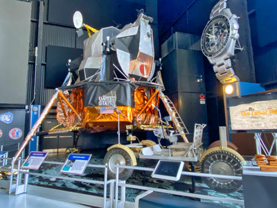 Inside one of the museum spaces, they have an actual Saturn 5 rocket hanging from the roof. Interestingly, we had seen another legacy Saturn 5 earlier this year when we visited the Kennedy Space Center in Florida. MSFC had the famous ring (seen in a Tang breakfast drink commercial) that connected 2 stages of the Saturn 5 rocket on display ,along with pictures of it loaded on a tractor-trailer being shipped on a two-week voyage from its factory in California. To say it was an over-sized load was a bit of an understatement. The entire route must have been a no-passing zone. Traffic in Huntsville must have been a mess on shipping days!