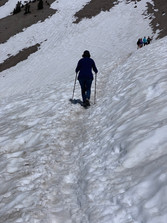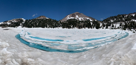 After Reno, we headed west toward the California coast, stopping for two days to visit Lassen Volcanic National Park. Lassen Peak erupted just 100 years ago, and there's still evidence of rock slides and pyroclastic flow, along with pictures a photographer took of the eruption using an old box camera. There are active geothermal areas (see the boiling mudpot video below). Finally, there are beautiful pristine lakes, some of which we could hike around, and some of which were still snow-covered and frozen in the higher elevations. The California mountains had significant snowfall last winter, and not all had yet melted even though it was the middle of July! We were able to do a short hike on a snow-covered Lassen mountain trail.
