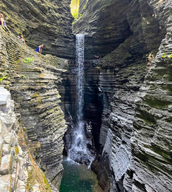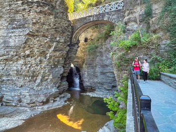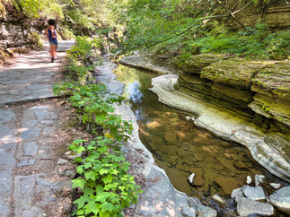 After biking on a local rail trail the day of our arrival, we spent the next day at Watkins Glen State Park, the area's main draw and one which gets almost one million visitors every year. Since the temperature was in the 90s, we opted to take a shuttle to the top of the gorge and then walk down the 1.5 miles and 800 stone steps of the trail, rather than making a round trip hike.
