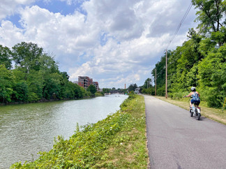 The Erie Canal runs across the state just north of the Finger Lakes, so we spent one of our days in the area biking about 22 miles on the towpath next to the Canal. The Canal is still actively used by recreational boaters, and we passed by one of its 35 locks. We had lunch in the cute town of Fairport right on the canal.