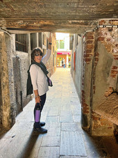 Our first day we decided to explore Venice's main island. We found a route suggested by a blogging couple that had a downloadable Google map. Over 3+ miles and about five hours, we wandered through narrow alleys, broad plazas, along and over canals, through tourist havens like the Rialto Bridge, and finally back to our starting point. Thank goodness for geolocation and walking directions on Google Maps, although in some narrow passages we only had a small view of the sky (and GPS satellites) and would have to wait to the next plaza to be "found" again. We got a really good feel for the variety of different parts of Venice.