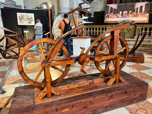 Leonardo da Vince did not live in Venice, but an old church had been repurposed into a museum featuring wooden models of many of the inventions recorded in his notebooks.