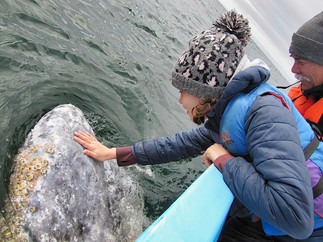 The grey whales are not scared of humans at all. As a matter of fact, they are quite curious and friendly, coming right up to the boat on their own.