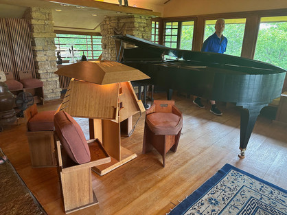 The house had many elements of Wright's "prairie" architecture style, and was more spacious than other Wright houses we've visited. Since it was his home, not just one designed for someone else, there were many personal touches, artwork and large oriental prints on many of the walls, and numerous musical instruments.
